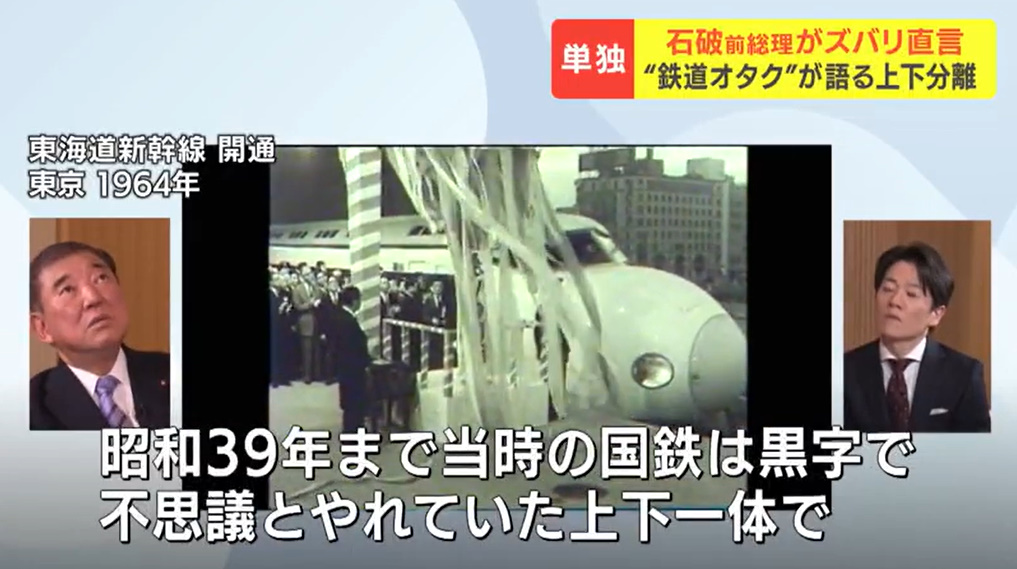 @reratea「鉄道は上下分離が当たり前」石破茂前総理大臣が持論「空気を運んでいるような鉄道まで国が支援するかというと、それは違う」バス転換の必要性も newsdig.tbs.co.jp/articles/hbc/2… さっきテレビで見た。国鉄前期について上下一体でも「不思議と」やれていたってのは違和感(当時は利用者が多く当たり前)。