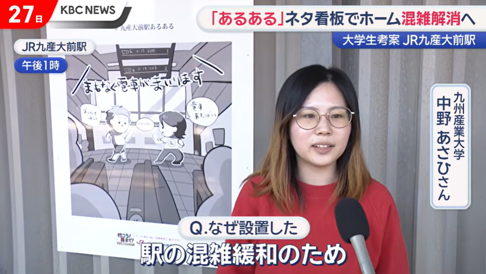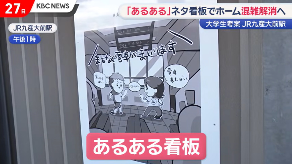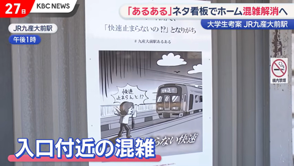 @KBC_NEWSJR九産大前駅に大学生の「あるある」ネタ看板設置 駅の混雑緩和に期待 ▼記事を読む kbc.co.jp/news/article.p…