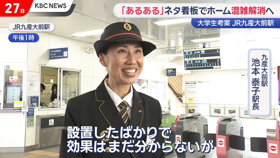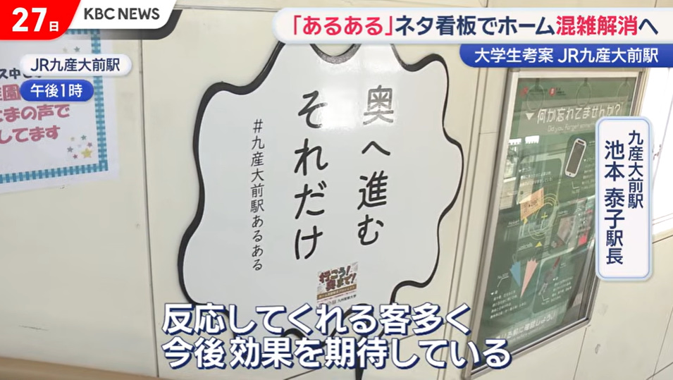 @This_is_UtagawaJR九産大前駅に大学生の「あるある」ネタ看板設置 駅の混雑緩和に期待 youtu.be/X7oZM7vxckE?si… @YouTubeより