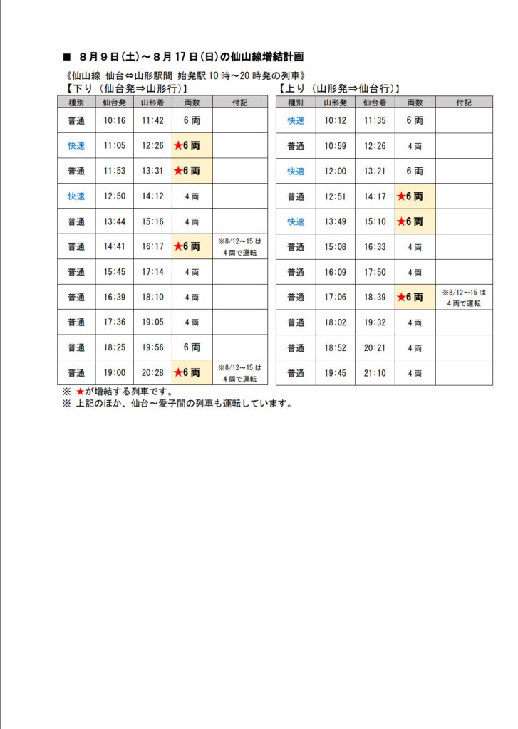 山形新幹線のE8系故障については、多くの方が影響を受けていることでしょう。お盆の時期に66本の臨時列車が運休となることは、旅行を予定していた方々にとって大きな痛手です。特に観光シーズン中にこのような事態が発生したことは残念でなりません。仙山線の増結や臨時快速の運転の、他の交通手段のアナウンスがしっかり行われることを期待しています。