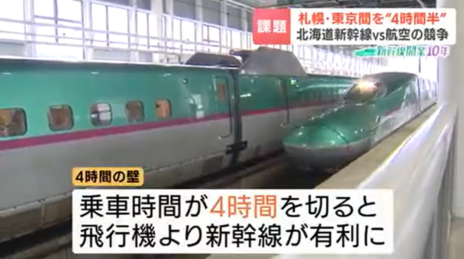 NEW! 北海道・東北・秋田・山形・上越・北陸(新幹線 鉄道コラム) 4時間の壁??完全白旗の飛行機利用との分岐点⁉苦渋『4時間半』への挑戦?? 2026年3月26日 北海道新幹線の札幌延伸では、東京―札幌間を「4時間半」で結ぶことを目標としていますが、飛行機の所要時間(約3時間半)に対し、新幹線が優位になるとされる「4時間の壁」を超えるのは難しい状況です。次世代車両「ALFA-X」により高速化や騒音対策は進むものの、青函トンネルでの貨物列車との共用により速度制限(最高160キロ)が... あいえす