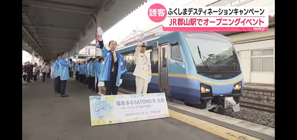 NEW! JR東日本(鉄道ニュース速報 東日本) 福喜たる??特別列車はSATONO??ふくしまDC開始でOPイベントが郡山駅で開催⁉ 2026年4月5日 4月1日に始まった「ふくしまデスティネーションキャンペーン」のオープニングイベントが、4月4日に郡山駅前で開催されました。JRや自治体が連携して福島の魅力を発信し、特別列車の運行や日本酒・海産物の振る舞いなどで来場者を楽しませました。キャンペーンは6月末まで続き、県内各地で多彩なイベントが行われます。 <関連する記事>... あいえす