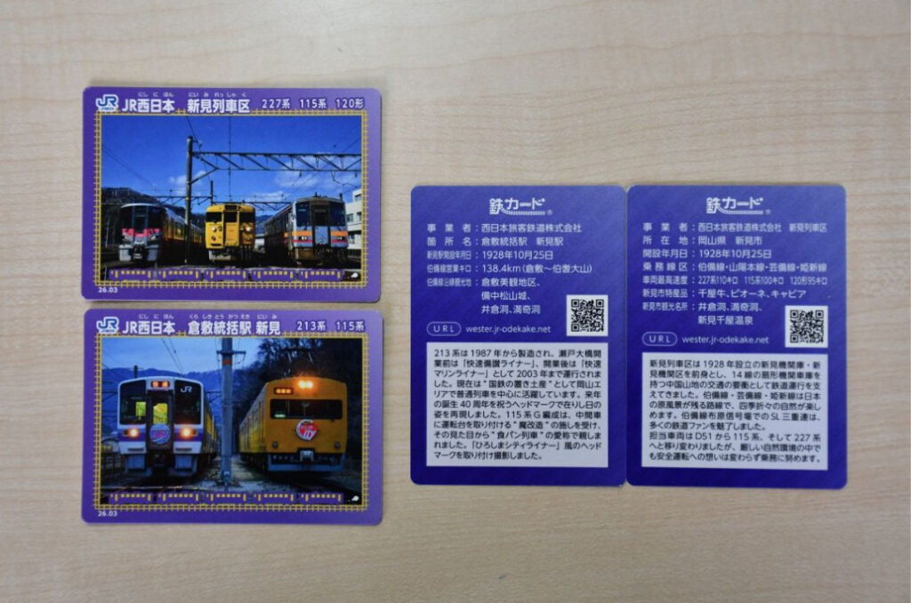 NEW! JR西日本(鉄道ニュース速報 西日本) 無料先着500名??213系・食パンの2ショットorウララ・115系・キハ120の3ショット⁉ 2026年4月5日 岡山県新見市のJR西日本備中地区連絡会は、伯備線の「食パン電車」(115系)などを撮影したオリジナル鉄カード第4弾を制作し、新見駅で無料配布しています。カードは2種類で各500枚限定、切符を持つ利用者に配られ、地域の魅力や鉄道の楽しさを発信する狙いがあります。 <関連する記事> 新見駅車両のオリジナル「鉄カード」2種... あいえす